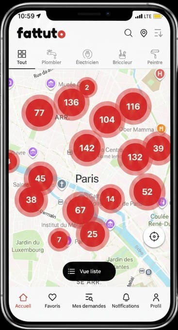La plateforme fattuto géolocalise tous les professionnels disponibles à proximité selon vos critères.